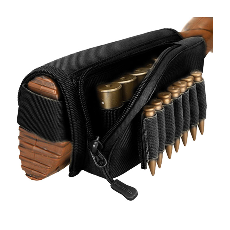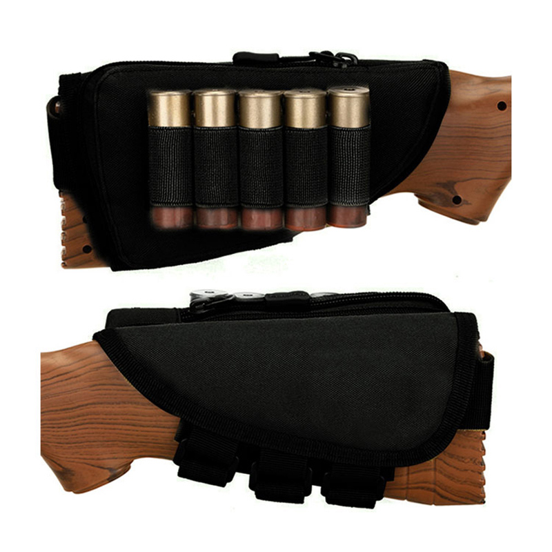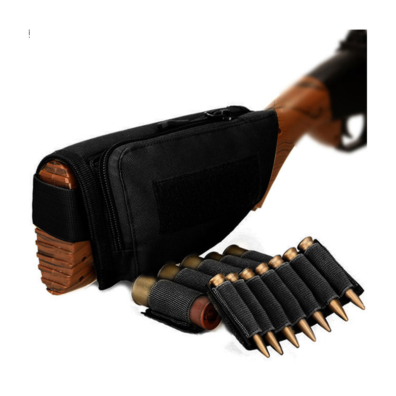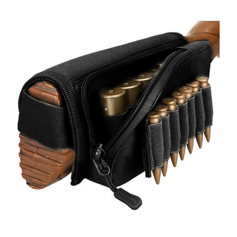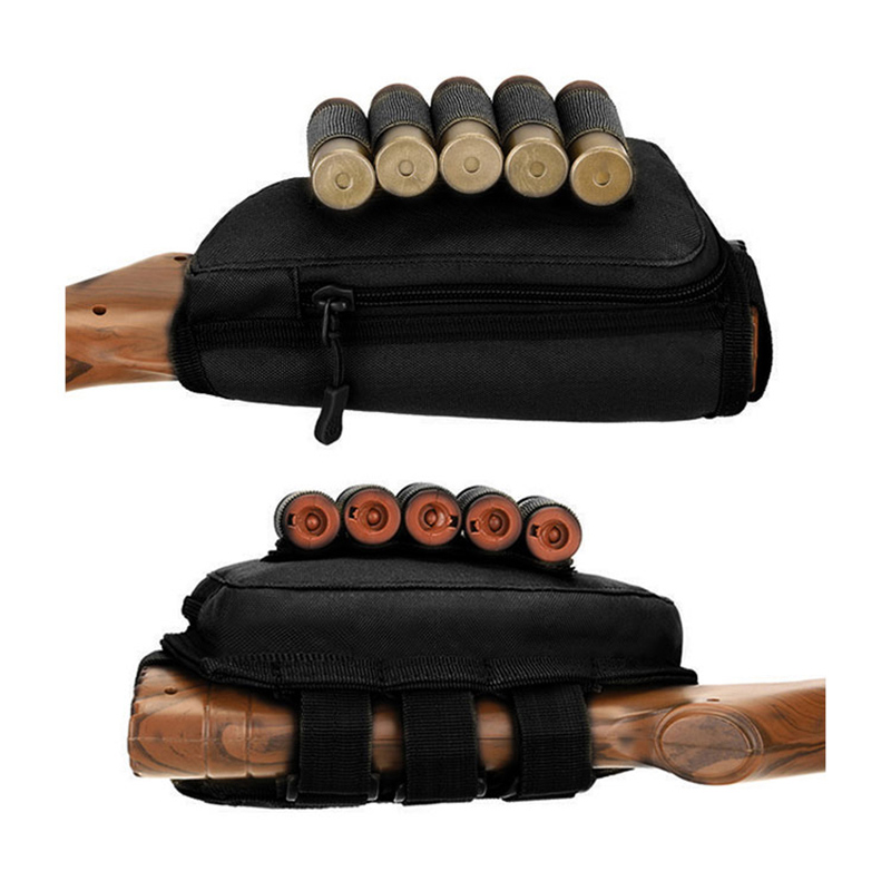 Buttstock kindstøtte Ammunitionsholder Justerbar skalholder Jagtbærer Højrehåndet Hurtig Aftagelig kugletasker til haglgevær(5 patroner) og en riffel(7 patroner).2magisk klistermærke vedhæftede ammunition elastiske bånd, holderen med 5 slidser er til haglgeværshylster inde i lynlåsen, holderen med 7 kugler på ydersiden er til riffelkugler.