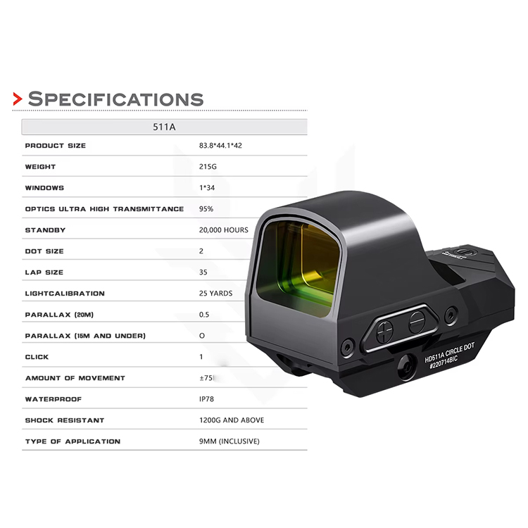 HD511A kompakt optisk jagt-rødpunktsigte er tilgængelig til engroskøb i store mængder