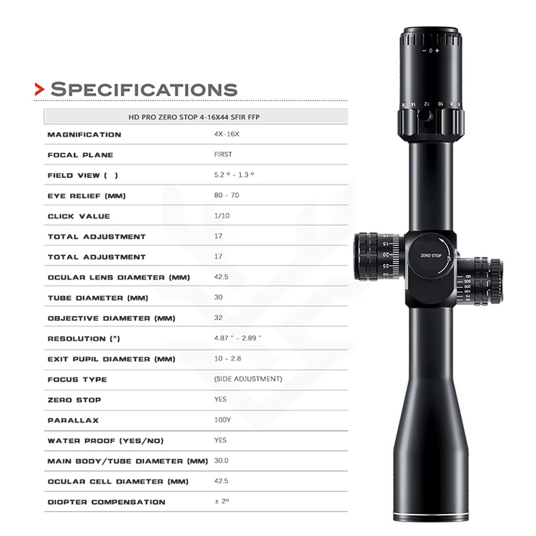Optik HD PRO ZERO STOP 4-16x44 SFIR FFP Jagt med høj stødmodstand