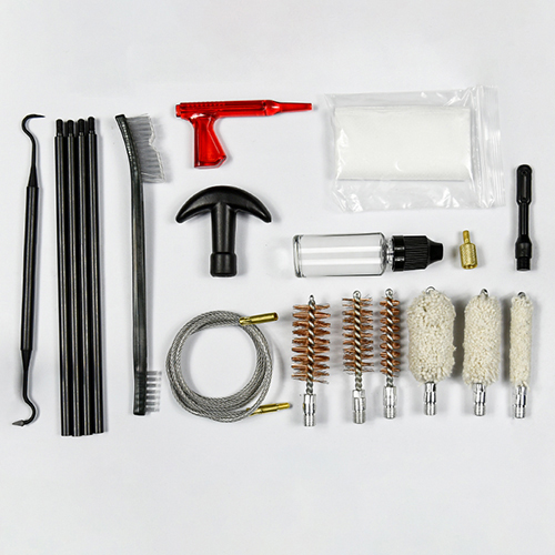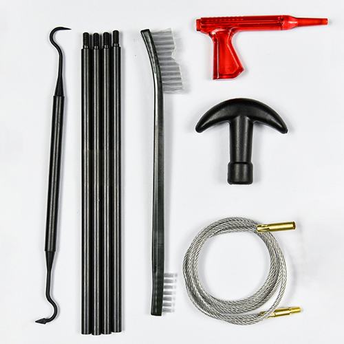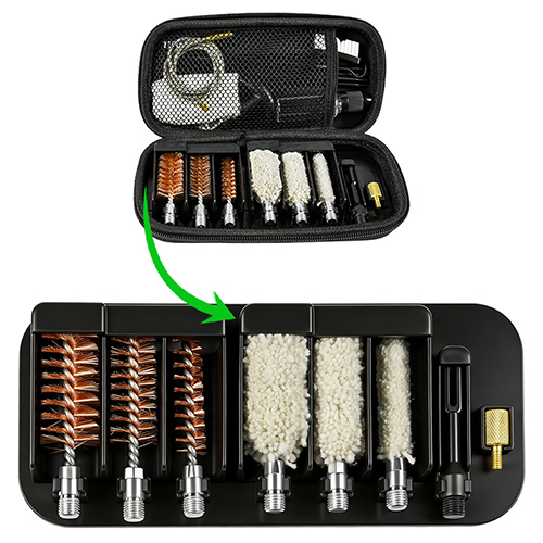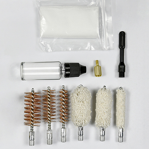 Haglgeværrensesæt indeholder 3 størrelser (12/16G, 20G, 410). Messing børster og bomuldsmopper, 4 stænger 1 kalbe. Sand og sort farve til valg.